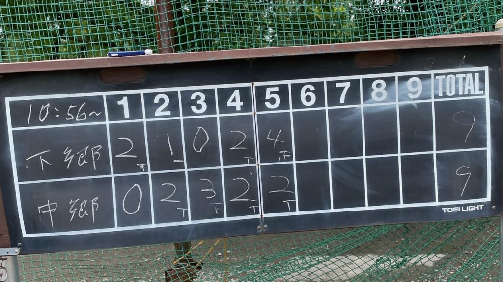 逆転され逆転するも逃げきれず 6月18日(日)、対中郷戦。1イニング4三振でのエースの出だし。好調な投球も、四死球のランナーを置いてホームランで逆転をゆるす展開。最終回で起死回生の満塁ホームランも、痛恨のエラーで同点に追いつかれドロー。最終回は審判のジャッジが…